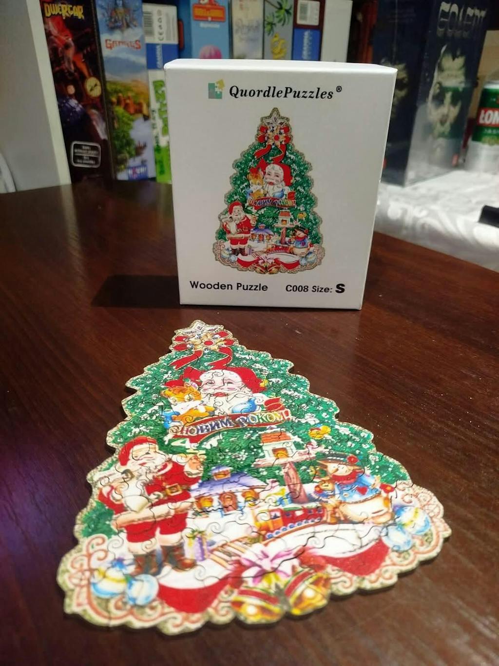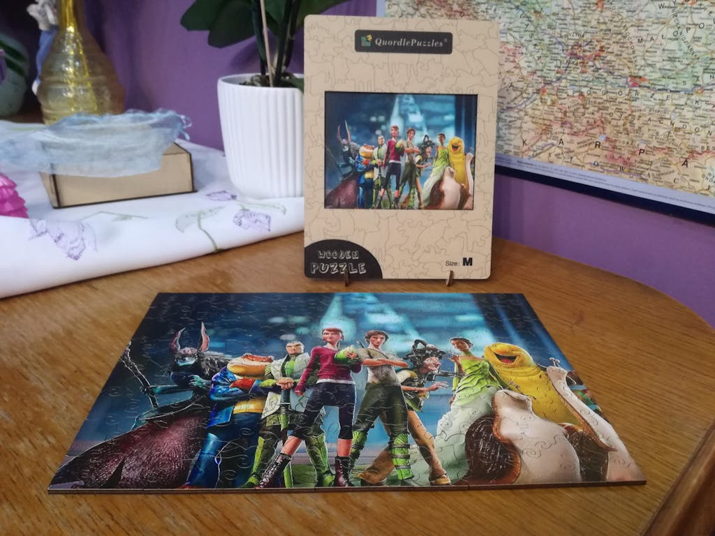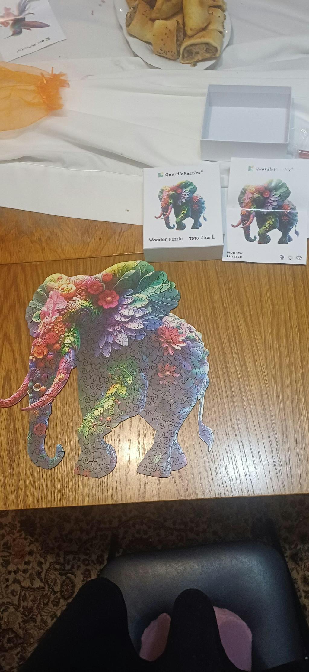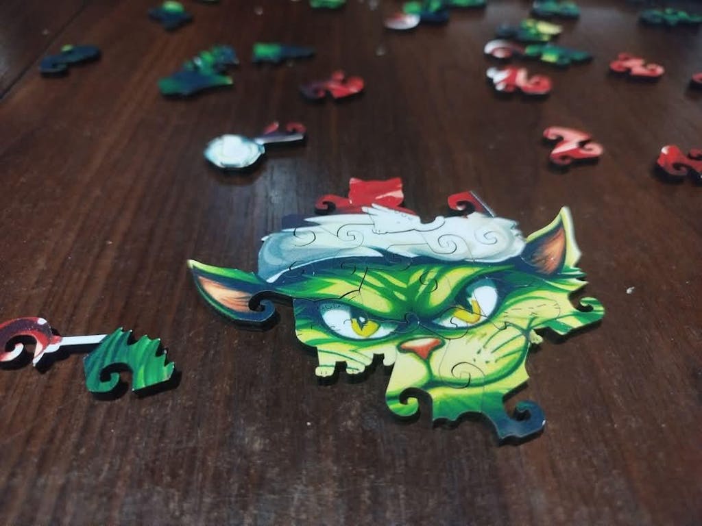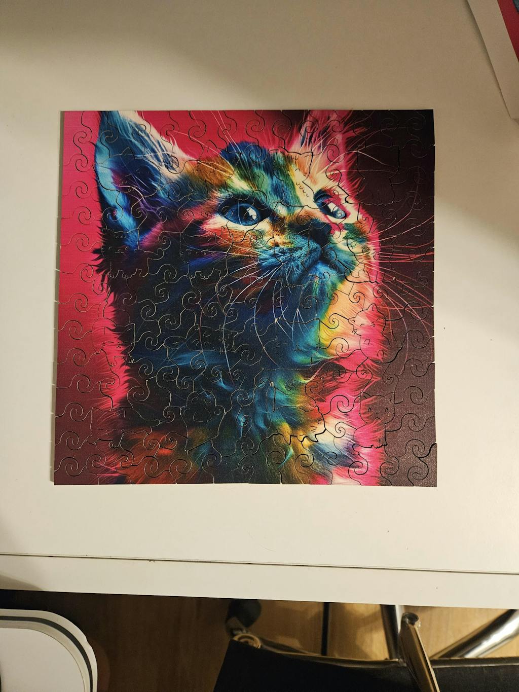 Ciekawy kształt układanki, ale też same puzzle mają bardzo różne kształty. Przyjemna odmiana od zwykłych papierowych puzzli. Efektowne. Czekam na pojawienie się większych rozmiarów.