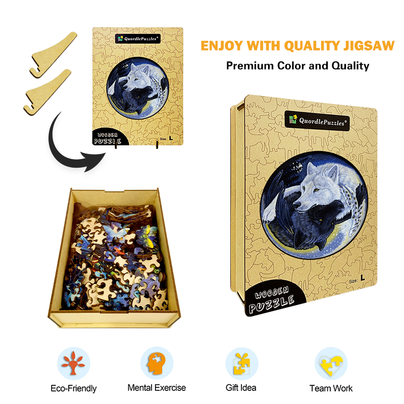 🔥Ostatni dzień 85% zniżki na drewnianą układankę czarno-biały wilk