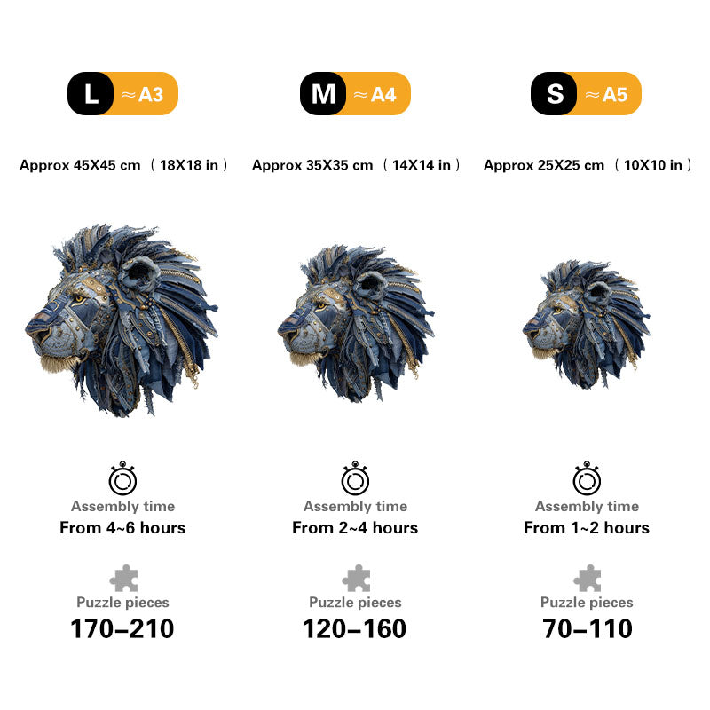 Denimowy Lew Drewniane Puzzle