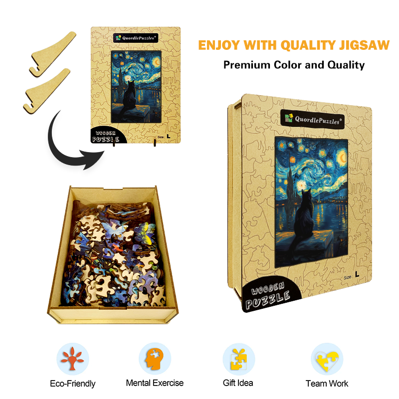 Ta drewniana łamigłówka wykonana jest z drewna lipowego niezawierającego formaldehydu i ma gładką powierzchnię. Jest także wysokiej jakości trwały i odporny na korozję. Po ekologicznym farbowaniu znajduje się warstwa ochronna, którą można przechowywać przez dziesięciolecia, zawieszając ją na ścianie lub służąc do celów wystawowych.