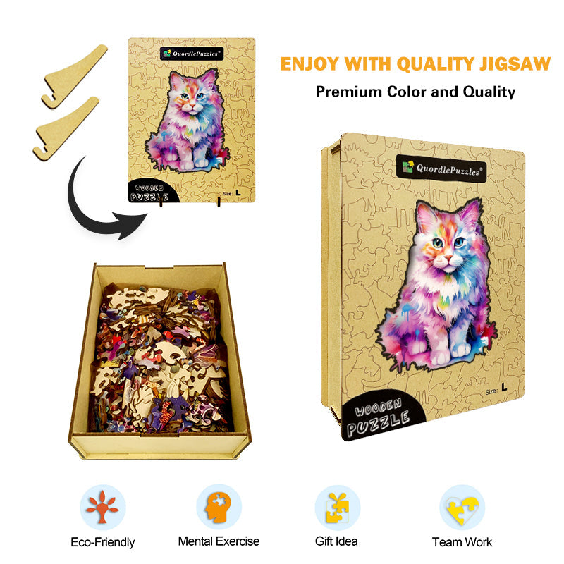 Ta drewniana łamigłówka wykonany jest z drewna lipowego niezawierającego formaldehydu i charakteryzuje się gładką powierzchnią. Jest także wysokiej jakości trwały i odporny na korozję. Po ekologicznym farbowaniu znajduje się warstwa ochronna, którą można przechowywać przez dziesięciolecia, zawieszając ją na ścianie lub służąc do celów wystawowych.