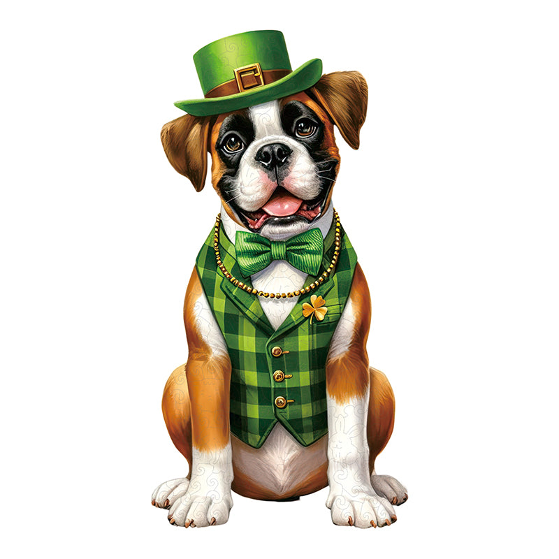 Drewniana układanka z motywem szczeniaka boksera na dzień św. Patryka